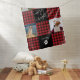 Modern script Merry & Bright red buffalo plaid Christmas photo blanket with space for 4 photos and your pet's name with a paw print surrounded by a fun quilt pattern grid.