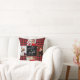 Modern script Merry & Bright red buffalo plaid Christmas photo pillow with space for 4 photos and your family name surrounded by a fun quilt pattern grid.
