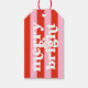 Red Pink Thick Stripes Bold Retro Christmas Gift Tag with the text "merry & bright"