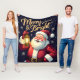Merry Bright Santa Holding Lantern Illustration Fleece Blanket