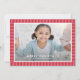 Merry bright stripe pink red frame Christmas photo Holiday Card