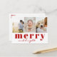 Merry Bright Three Photo Chic Red White Christmas Holiday Postcard