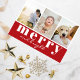 Merry Bright Three Photo Red White Christmas Holiday Card
