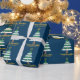 This cute Merry Chrismukkah wrapping paper features a green Christmas tree decorated with blue dreidel ornaments and a gold Jewish Star of David at the top for Hanukkah to combine the 2 holidays for a family that celebrates both.