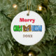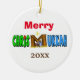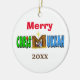 Jesus aka the Christ Child is the center of both the Jewish and Christian religions. Therefore, I made the "M" in Chrismukkah as the manger to represent that. Customize this with the year on the front and a Name on the back if you wish.