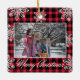 Merry Christmas 2 Photo Snowflakes Red Plaid Ceramic Ornament