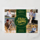 Merry Christmas 4 Photo Collage Green and Gold Foil Holiday Card
