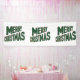 This banner showcases the words "Merry Christmas" in a bold print font plus green letters red outline with different size letters in the background in this X-mas theme and style. This banner has single side printing outdoor safe measures 4"x12" made with an elegant matte finish and is both fade and tear resistant for Indoors or outdoor use great for advertise anything, from birthdays to graduation, weddings to anniversaries. Hemmed and thermally welded edges for neat finish outdoor banners can be bought with metal grommets.