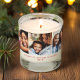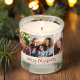 Modern holiday scented candle to give as a gift or enjoy in your home featuring 6 of your favorite photos, "Merry Christmas" is written in a stylish red script. On the back, add your names or other text in simple typography.