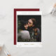 This Save the Date card also features a Christmas greeting. You can change the font and/or color of the text and you can also change or delete text if you prefer. You can, fr example, replace the + symbol between the names with 'and' or another symbol. You can also change the base on back if you'd like a plain, sold color instead. We've added a layer of gradation so that the text will be more visible at the bottom of the photo. But a lot will depend on the nature of your photo, so please try it out and see how it looks!