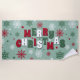 Merry Christmas colorful text design with snowflakes decoration on green background
