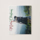 Elegant Merry Christmas photo puzzle with beautiful cursive typography in red and green. This modern holiday family photograph features gorgeous script and your name in white over the full bleed picture for a great personalized holiday gift.
