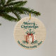 Merry Christmas beige burlap gift box green Ceramic Ornament