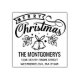 This rustic holiday return address rubber stamp features script typography that reads "Merry Christmas" accented by bells. Add a festive touch to your holiday mailings! Designed by Susan Coffey.