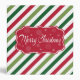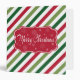 Merry Christmas illustration with text and snowflakes design on red, white and green striped background