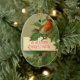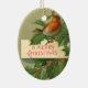 Ornament featuring Holiday bird and leaves with "A Merry Christmas" greeting. Vintage Christmas postcard image.