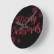 Merry Christmas Black and Red Snowflake Typography Round Clock