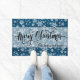 Merry Christmas Blue Burlap Snowflake Pattern Doormat