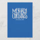 An original and unique Merry Christmas text design in blue, perfect for celebrating party and Christmas lunch or dinner invitations and matching festive stationery.