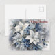 Merry Christmas Blue Silver Poinsettia Postcard