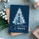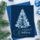 Merry Christmas Blue White Watercolor Tree Holiday Card