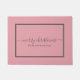 Elegant Merry Christmas Doormat with a dark gray script on a blush pink background. Personalize with your family name or text.