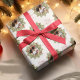 This design features merry Christmas holiday greenery foliage, wreath botanical rustic holly berries, merry Christmas photo custom name, pine branches twig tree leaves, merry Christmas gift wrap, Christmas holiday gift wrapping supplies, modern calligraphy script font, trendy stylish typography text, Christmas holiday circle round picture ,from family picture personalized