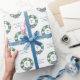 Merry Christmas Boxwood Wreath Blue White Baubles Wrapping Paper