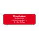 Two white stars accompany the white script that says Merry Christmas on the top line. Three lines of display text are under the script. You can edit the text to show your name and return address. The label is bright red. All text is white and can be edited or deleted.