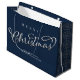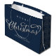 Merry Christmas Calligraphy Navy Blue Snowflake Large Gift Bag