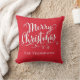 Merry Christmas Calligraphy Red Snowflake Holiday Throw Pillow