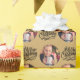 Photo wrapping paper, personalized with your picture and hand lettered with Merry Christmas in brushed calligraphy. The photo template is set up to display your picture in a round shape. If you have any problems with picture placement, try cropping your photo to a square and re-uploading it. The background color is gold, which you are welcome to change (just click "edit using design tool").