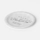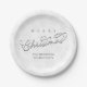 This design features a merry Christmas cute calligraphy script paper plate with an elegant silver snowflake pattern, with a winter snow elegance whimsical, stylish trendy calligraphy script font, a minimalist minimal white lettering, a Christmas holiday wrapping supplies, custom customized gift message greeting, silver calligraphy script grey text, Christmas holiday party supplies, Christmas disposable paper supplies