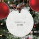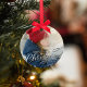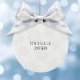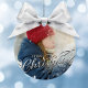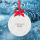 Merry Christmas Calligraphy Silver Snowflake Photo Ceramic Ornament