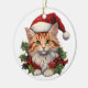 Merry Christmas Cat Kitten in Santa Hat and Holly Ceramic Ornament