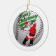 Santa takes a swing on this baseball themed Christmas ornament wishing everyone a Merry Christmas. Wish all the baseball fanatics of your life a Merry Christmas with this unique Christmas tree ornament.A great gift idea! Order today for fast service and prompt delivery. Qaunity discounts are always available.Thank You for shopping with BARRYSBARN and please bookmark this page for future reference.