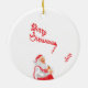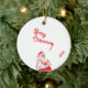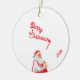 Lightweight, smooth, pure white ornament with nice sheen. Perfect size to be seen from across the room ... and to attract closer inspection! Price was great for ordering enough for the whole family! Clear, bold black design just as requested. Matches the order exactly. Just so nice!