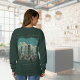 Merry Christmas holiday sweatshirt featuring the Chicago skyline along with custom text. Great for those who travel or live in Chicago and want clothing showcasing the city. The Chicago skyline is on the back of the sweatshirt. The front features simple typography. Custom text. Use the template to create your own Chicago Christmas sweatshirt. Keep the text shown or change to your desired name or phrase.