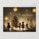 Merry Christmas. Children dance around trees Postcard