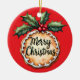Merry Christmas Cookie with Holly Berries Red Ceramic Ornament