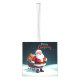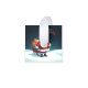 A whimsical winter scene featuring Santa Claus, laden with gifts, on his sleigh amidst a snowy landscape. The text "Merry Christmas" is elegantly displayed in festive colors, adding to the joyous atmosphere of the holiday season.