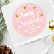 Merry Christmas Custom Name Simple Pink Classic Round Sticker