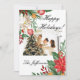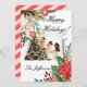MERRY CHRISTMAS CUSTOM PHOTO RED AND GREEN FLORAL DESIGN GREETING CARD