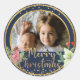 Merry Christmas Custom Photo on Blue & Gold Classic Round Sticker