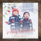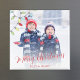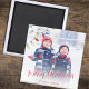 This design features a merry Christmas cute calligraphy, a whimsical colorful string of lights, a stylish trendy calligraphy script, a festive cute typography font, a family photo picture magnetic, fridge refrigerator magnetic photo, holiday photo stocking stuffer, a simple minimalist classic style, a red blue yellow green colors, a great holiday Christmas photo gift idea