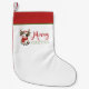 Perfect! Exactly what I ordered! I uploaded a picture of my blue chow, and the screen print was incredible. the back side of the stocking was the red and black checkered print. my puppy's name was also printed on the cuff of the stocking. PERFECT! Highly recommend this product! My puppy's name was screen printed onto the cuff of the stocking, the font was perfect!