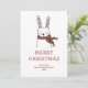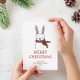Merry Christmas. Cute funny winter rabbit animal Holiday Card