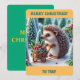 MERRY CHRISTMAS Cute Hedgehog Flat Holiday Card