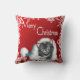 Merry Christmas Cute Kitty Pillow features a Christmas Red swirl pattern background framed with beautiful white snowflakes and a adorable kitty inside a blue Santa hat. Decorative white text is Merry Christmas. Perfect keepsake gift for Christmas! or Decorating your home of office. Simplex Knit Fabric; 100% Polyester; Wrinkle Free. Also available in 20"x20" or in Grade A Cotton.