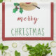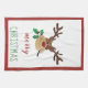 Merry Christmas Cute Reindeer Mistletoe Red Green Kitchen Towel